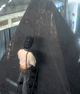 Construcción de tolva de carga para transportador de fábrica de vidrio.